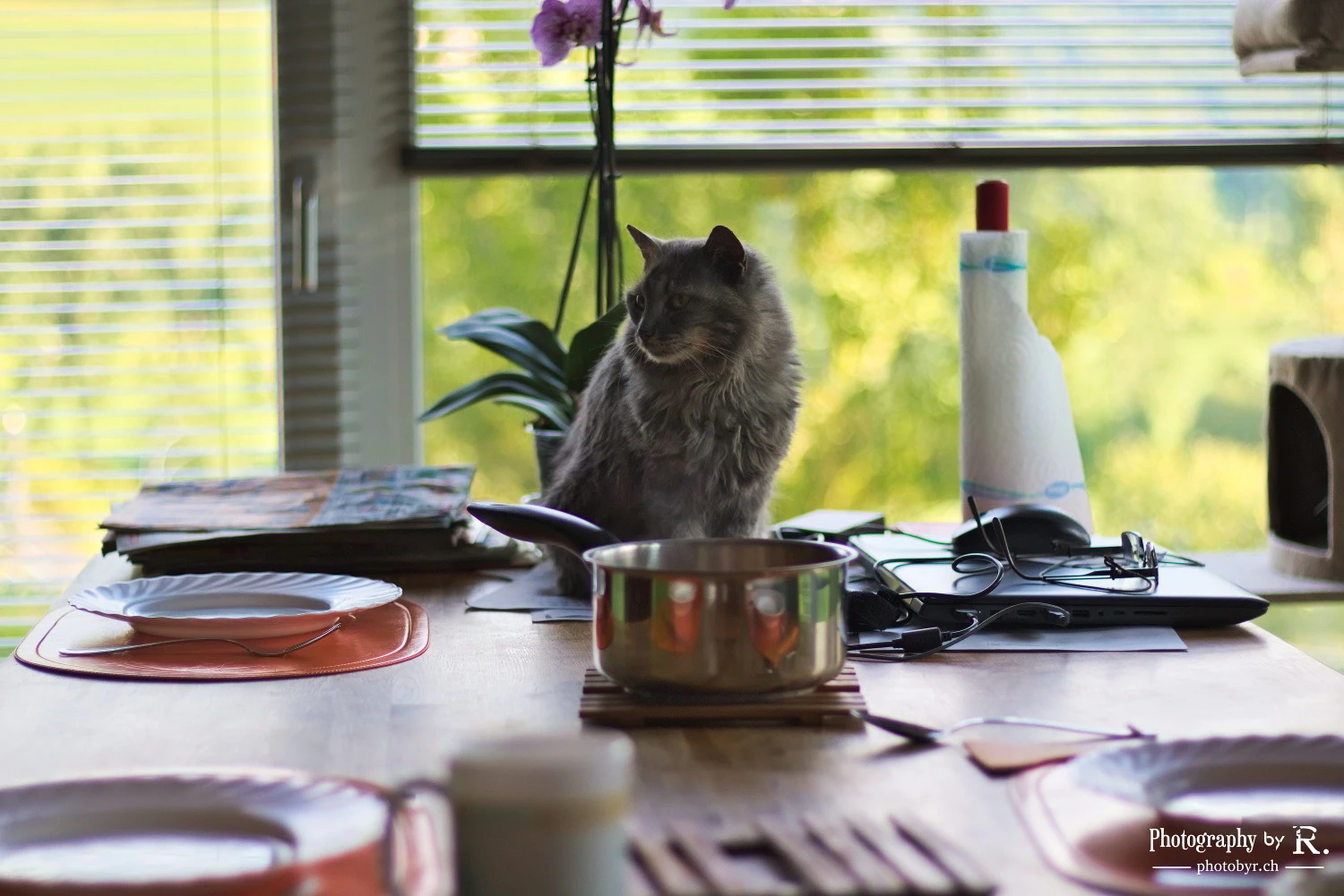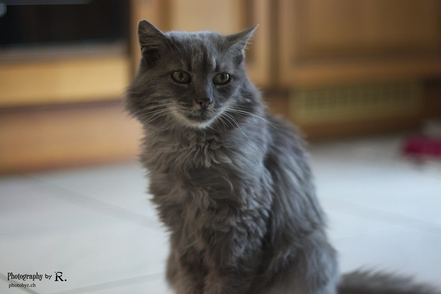 Grey cat in the kitchen